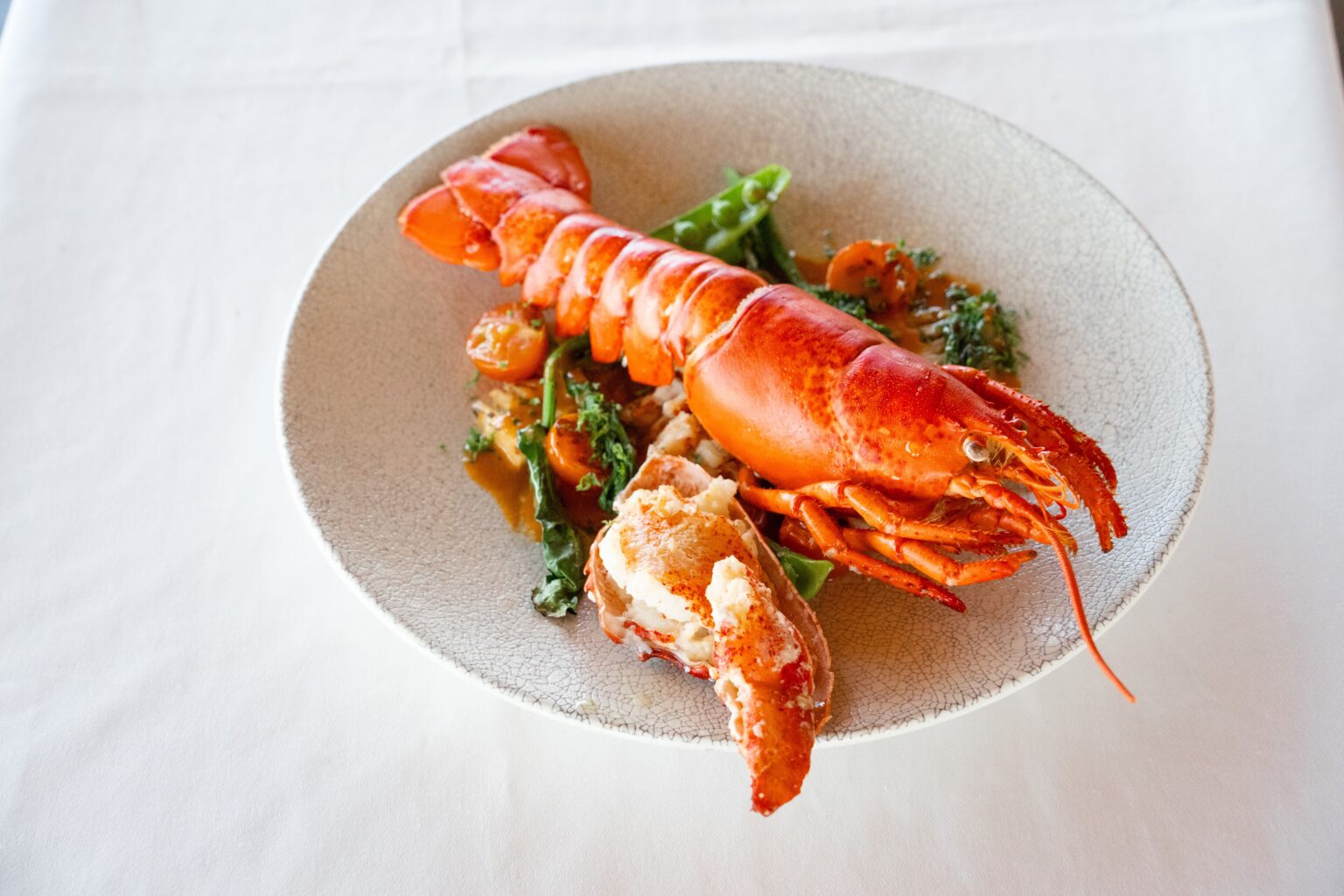 贅沢なオマール海老を香ばしくロティにし、濃厚な自家製ビスクソースで仕上げた特別な一皿。