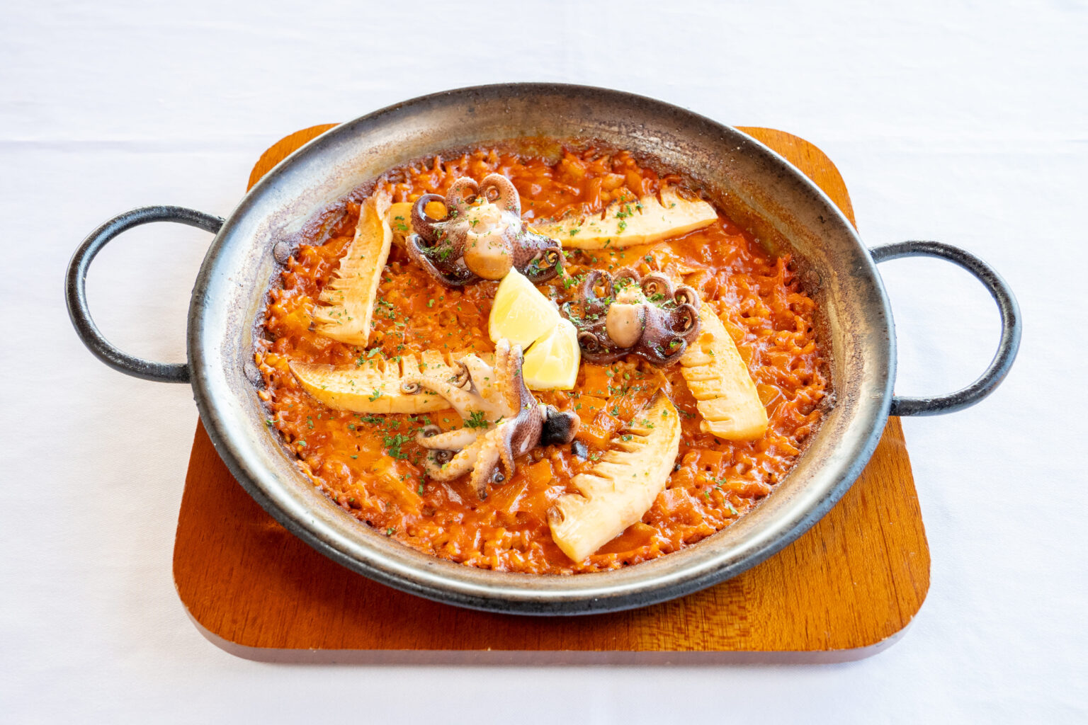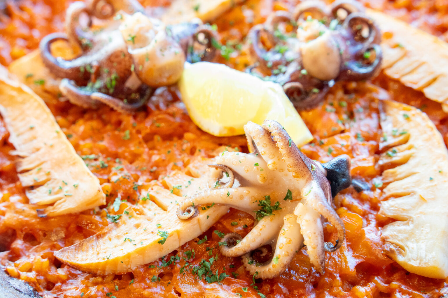 大ぶりでプリプリのイイダコと、旬の筍を贅沢に使用した春のパエリア。